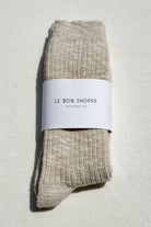 We were dreaming of a chunky, beautiful knit sock that felt effortless and romantically rustic. The rich texture, faded color palette, thick ribbing and organic scrunching of Cottage Socks invites feelings of wabi sabi and slow living. These natural, cotton blend socks loves to be worn with vintage florals and tonal layers of luxurious natural fibers. Made in South Korea Contents: 85 Cotton 13 Polyester 2 Spandex Sizing: One size fits most (US women's size 6-10) Care Instructions: Machine wash cold Tumble dry low Do not iron Do not bleach
