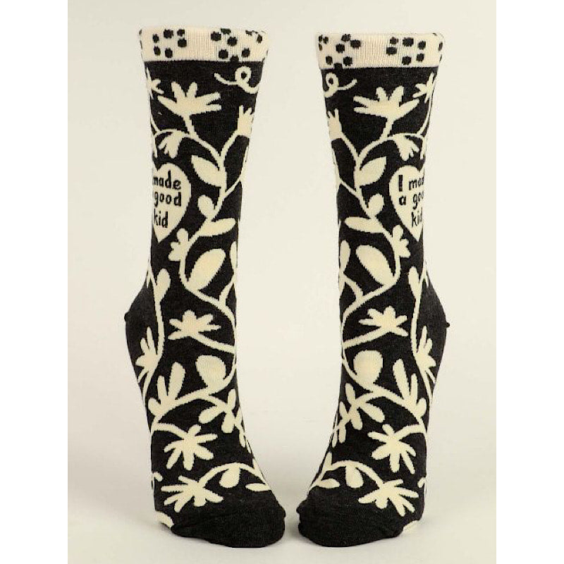 Blue Q: I MADE A GOOD KID WOMENS CREW SOCKS