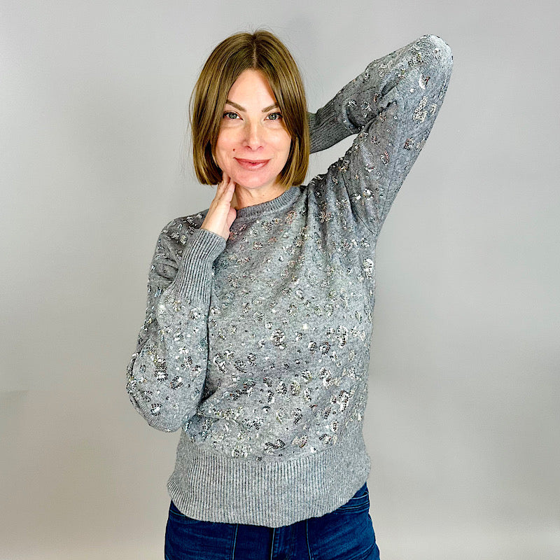 Grey Sequin Animal Print Sweater