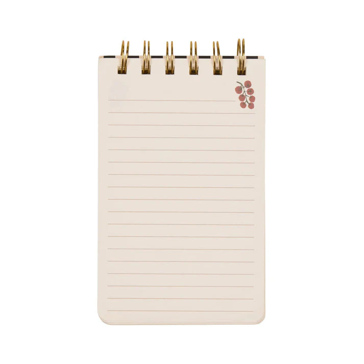 3.5" x 5.75" Notepad • 80 Lined Sheets • Gold Twin Wire Binding • Printed with Soy Ink on 100 GSM Uncoated Woodfree, Acid-Free Paper
