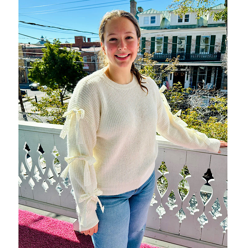 Cream Bow Accent Sleeve Sweater