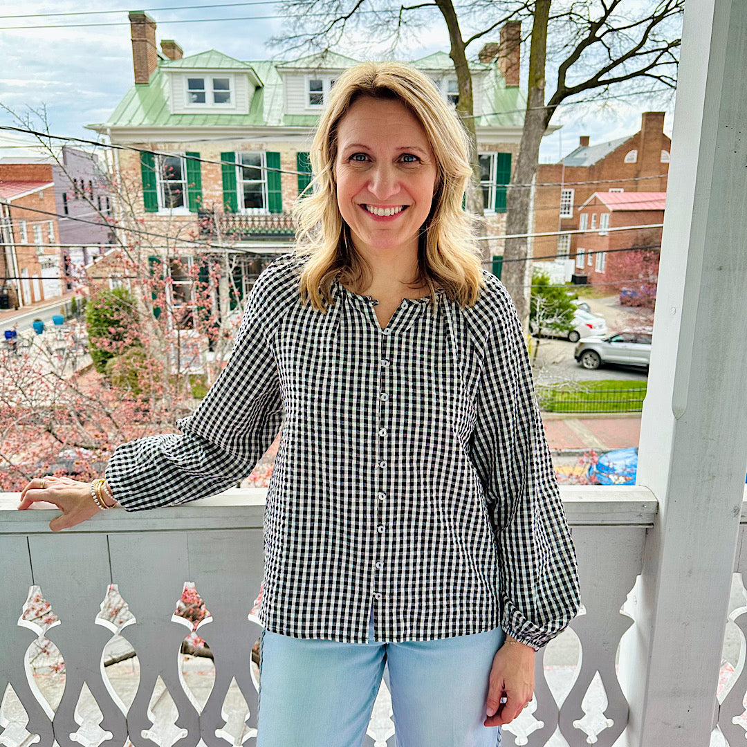 Black/White Gingham Button Blouse Picnic