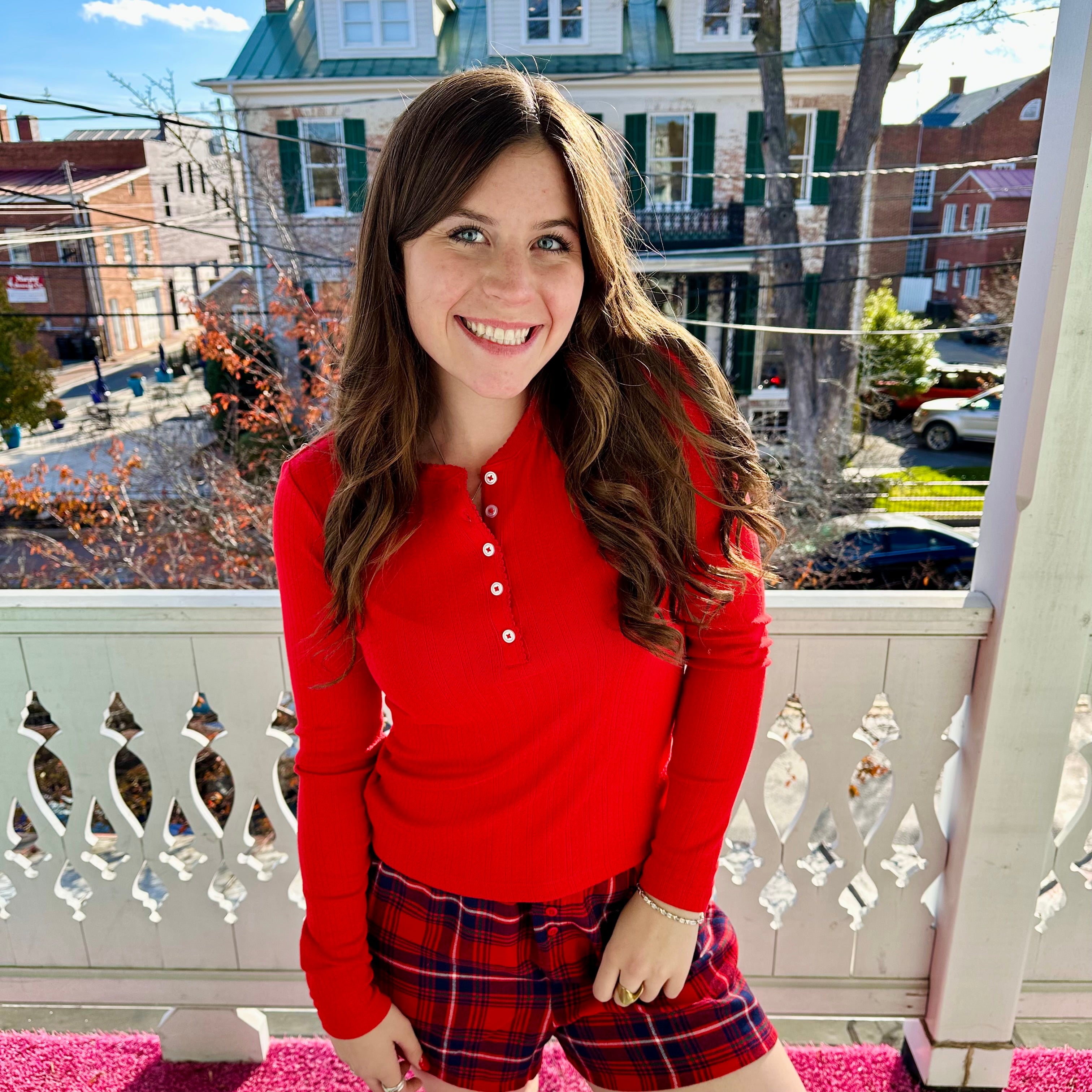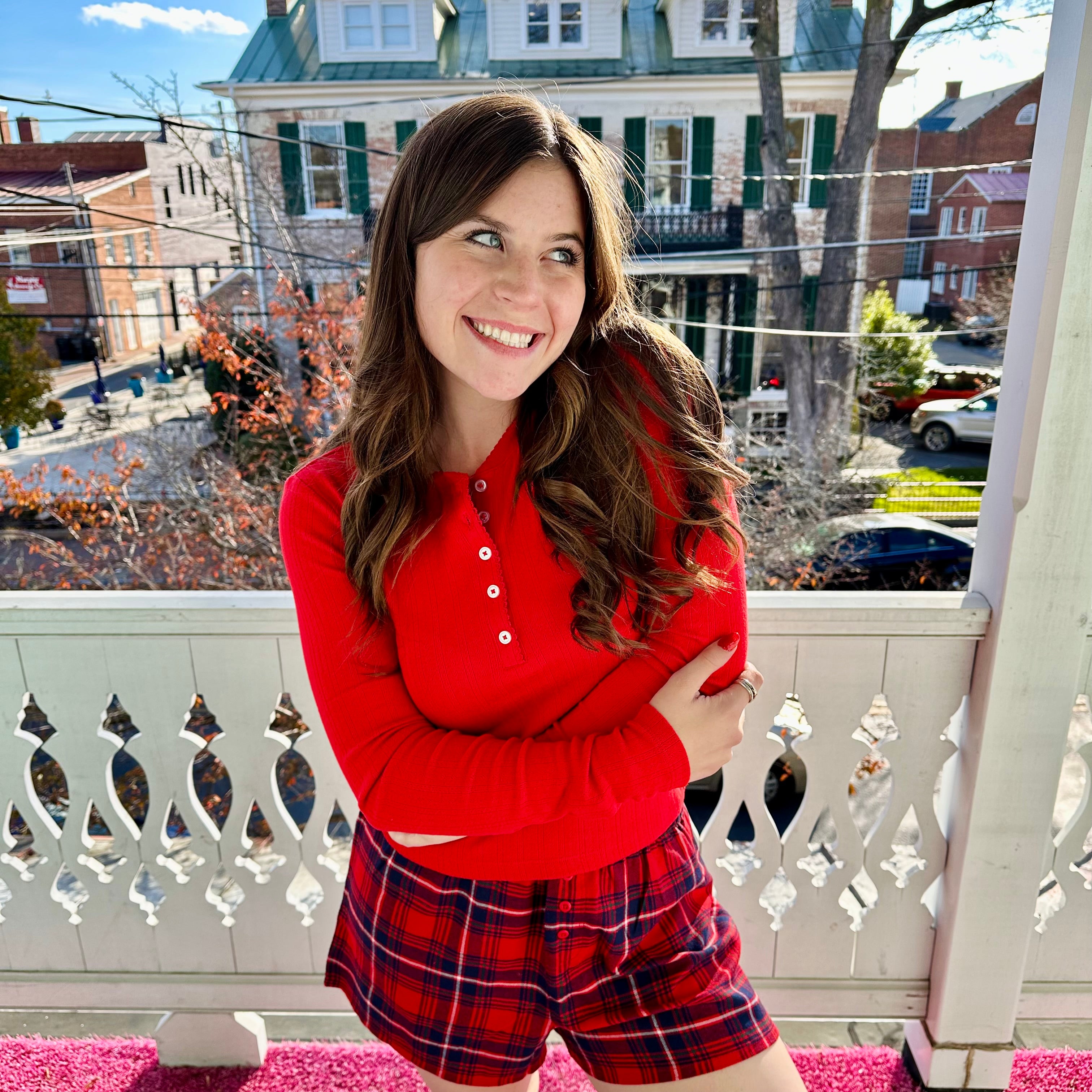 Holly Pointelle Top Festive Red