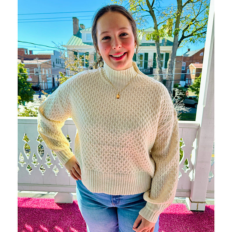 Beige Diamond Knit Mock Neck