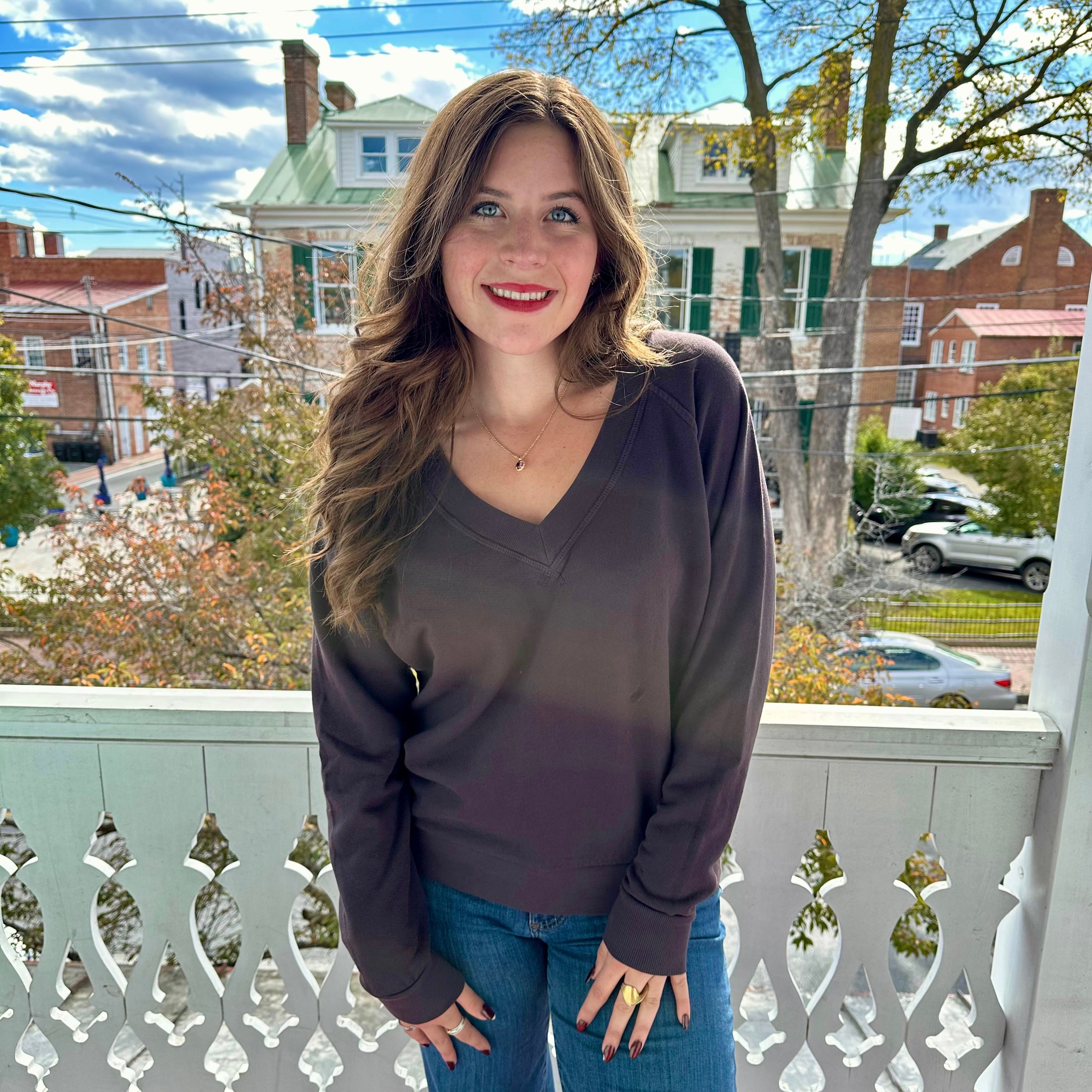Sinead Relaxed Terry V-Neck Sweatshirt Cocoa
