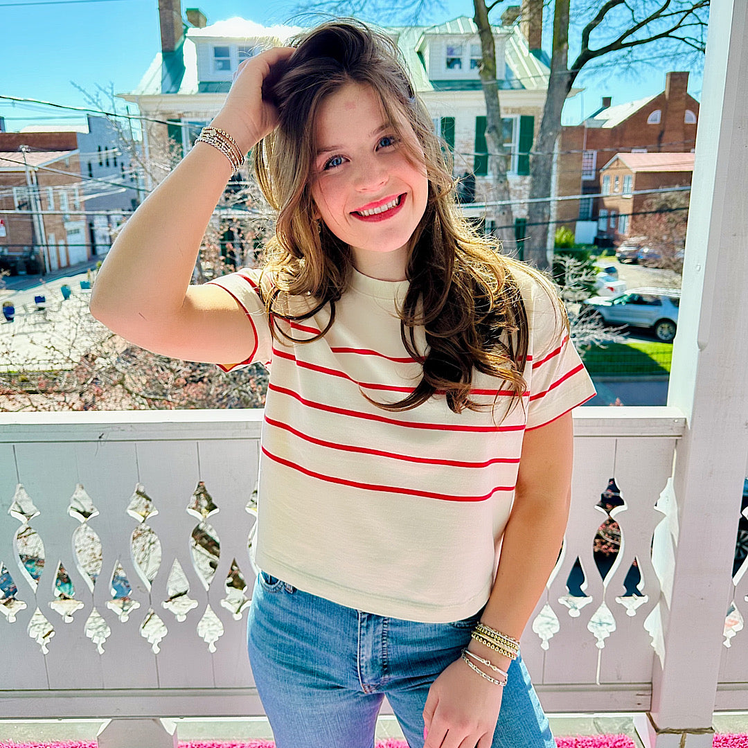 Luxe Sueded Crew Tee Red/White Stripe