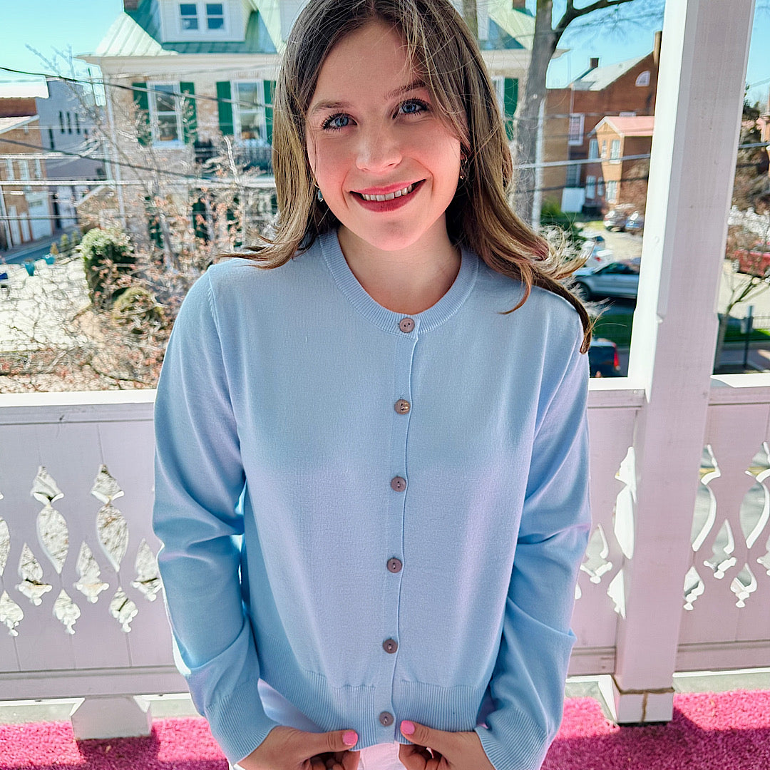 Jennifer Long Sleeve Crew Neck Cardigan Blue