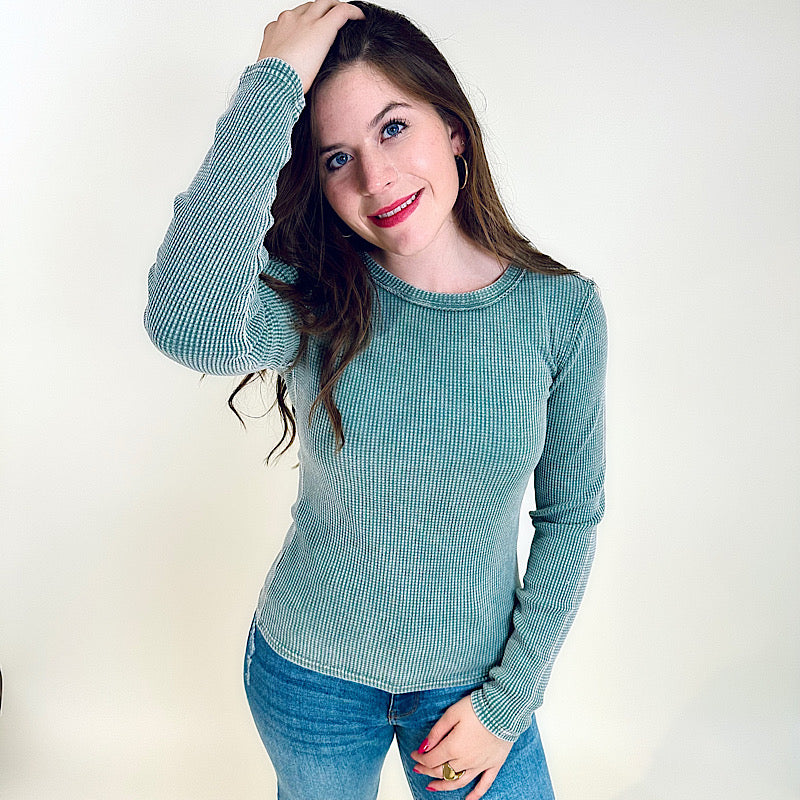 An easy essential with a lived-in twist. This fitted long sleeve is made from soft waffle thermal with raw-edge shoulder seams for that perfectly worn, forever-loved feel.