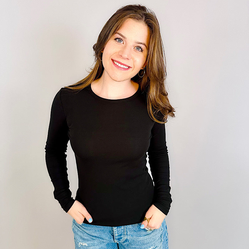 Black Interlock Knit Long Sleeve Top