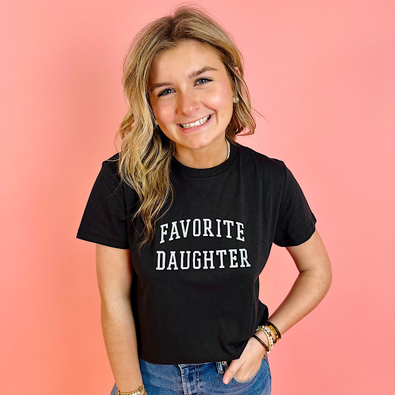 So there's no confusion. This classic cut tee says it all--simply styled in a soft tri-blend cotton with a cropped fit. Wear it to run errands, style it for a Friday night and rock it at the next family reunion.
