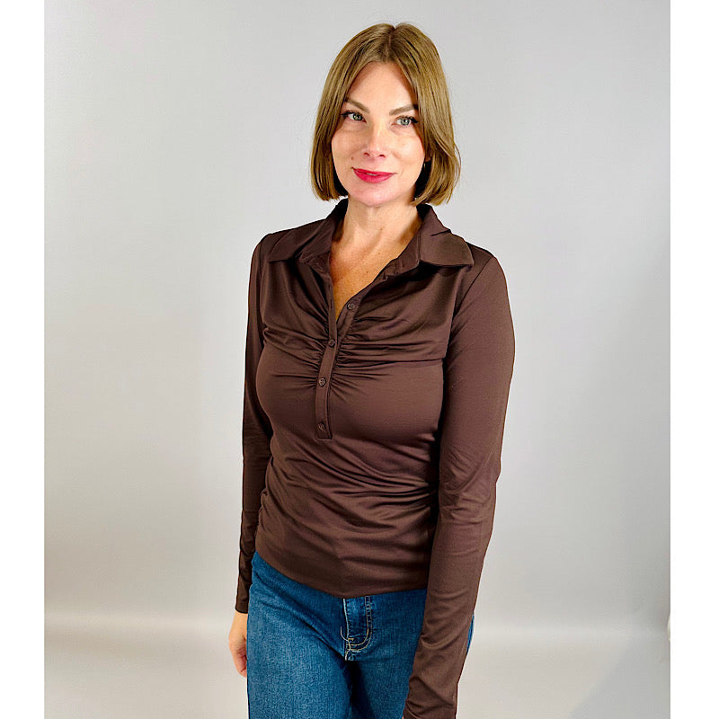Jori Shirred Top Dark Walnut