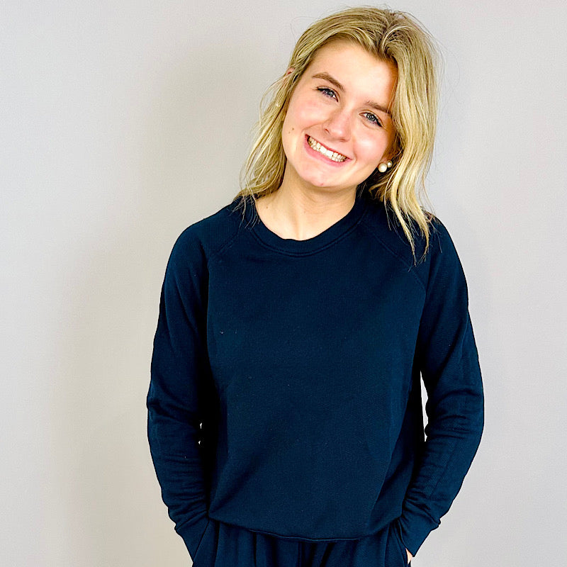 the perfect sweatshirt with a vintage cut and feel. bracelet sleeves are on the shorter side, hem hits the top of denim. you will need this in all colors, we promise.