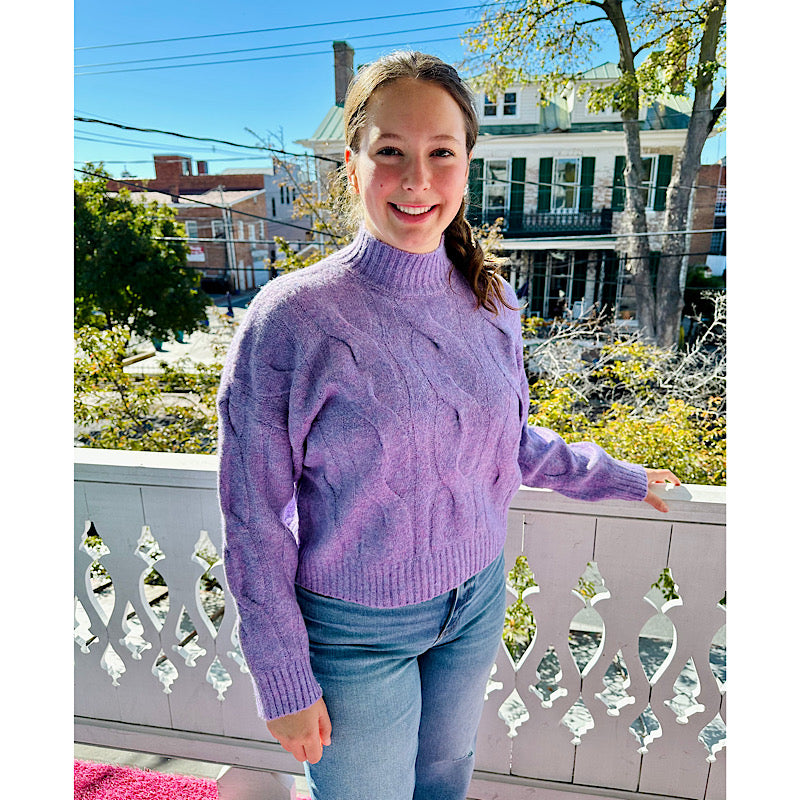 Mauve Cable Knit Mock Neck