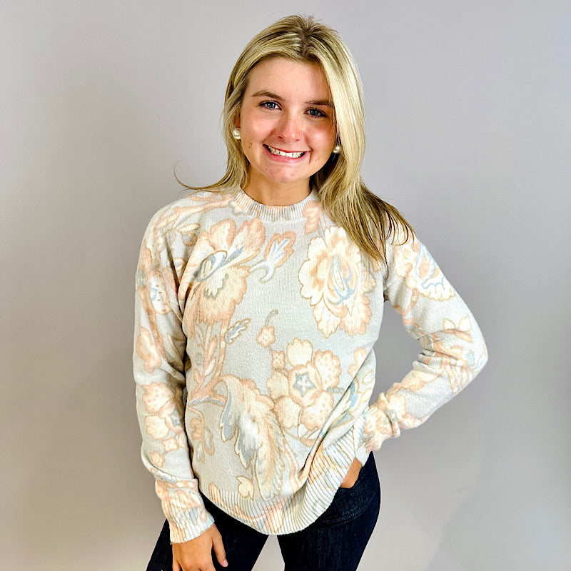 Pastel Baroque Print Crew Neck Sweater