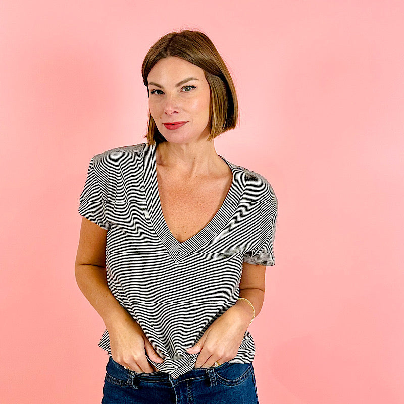 Rosie Jersey V-Neck Ivory/Black Stripe