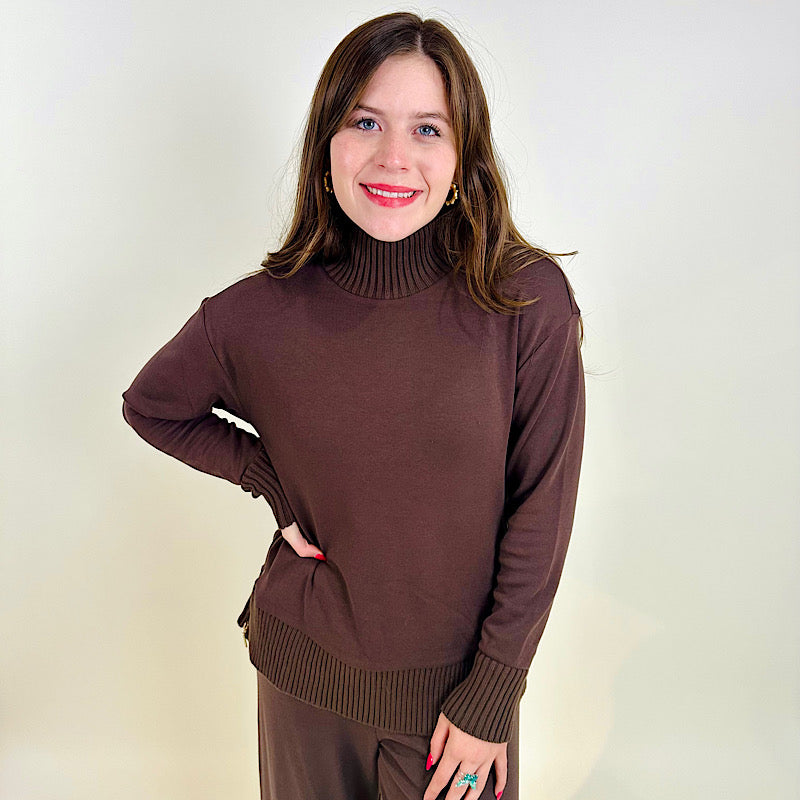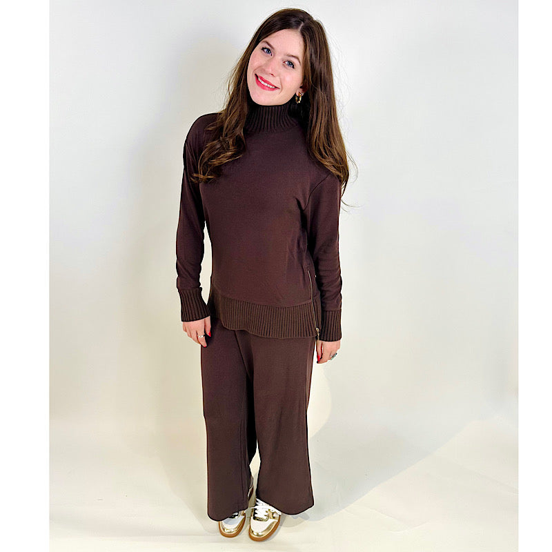 Designed in sleek midweight knit, this mock neck has a relaxed fit you’ll always reach for. Ribbed trim adds subtle texture, while side zips let you adjust the profile; loose and laid-back or tucked and styled.