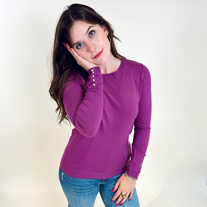 Slim Fit Pearl Detail Sweater Dark Purple