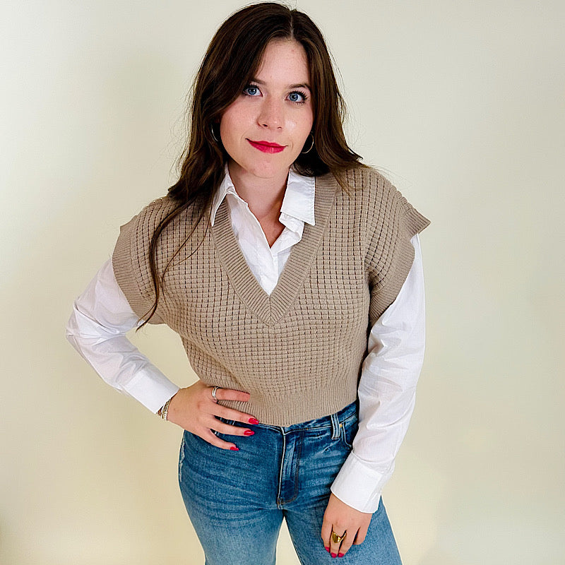 Taupe Twofer Collared Sweater