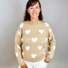 White Hearts Sweater Beige