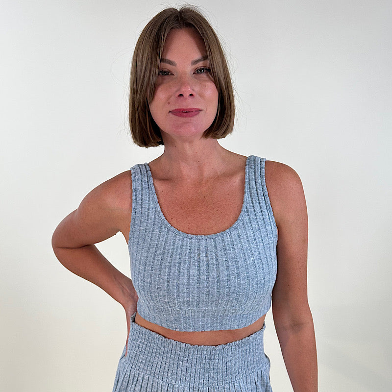 Zoe Rib Tank Bra Light Denim