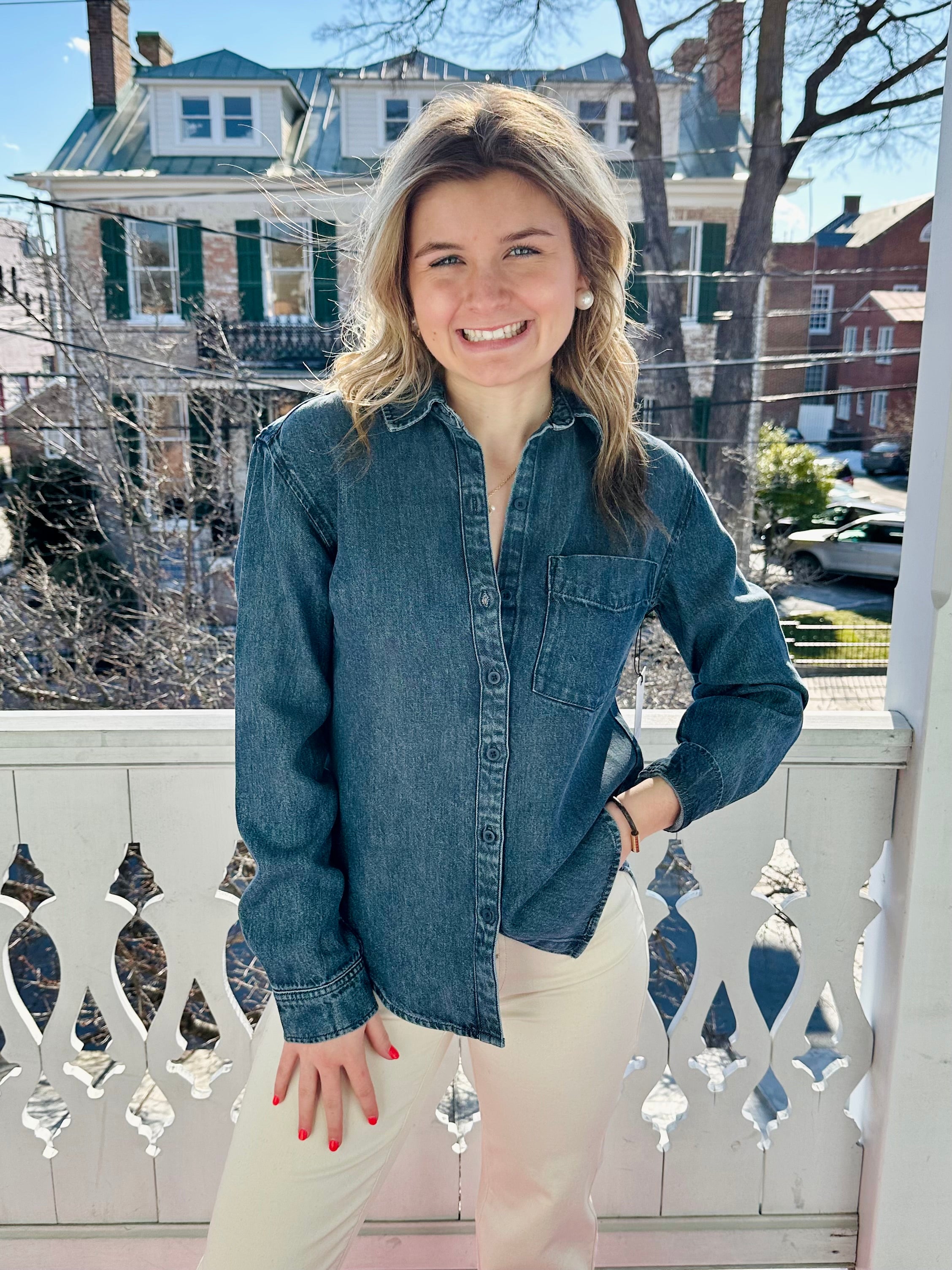 Sparkle Detail Blue Stripe Ruffle Neck Blouse