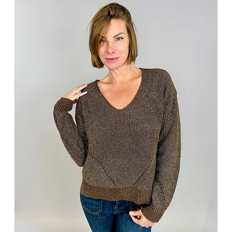 Rosie Jersey V-Neck Ivory/Black Stripe
