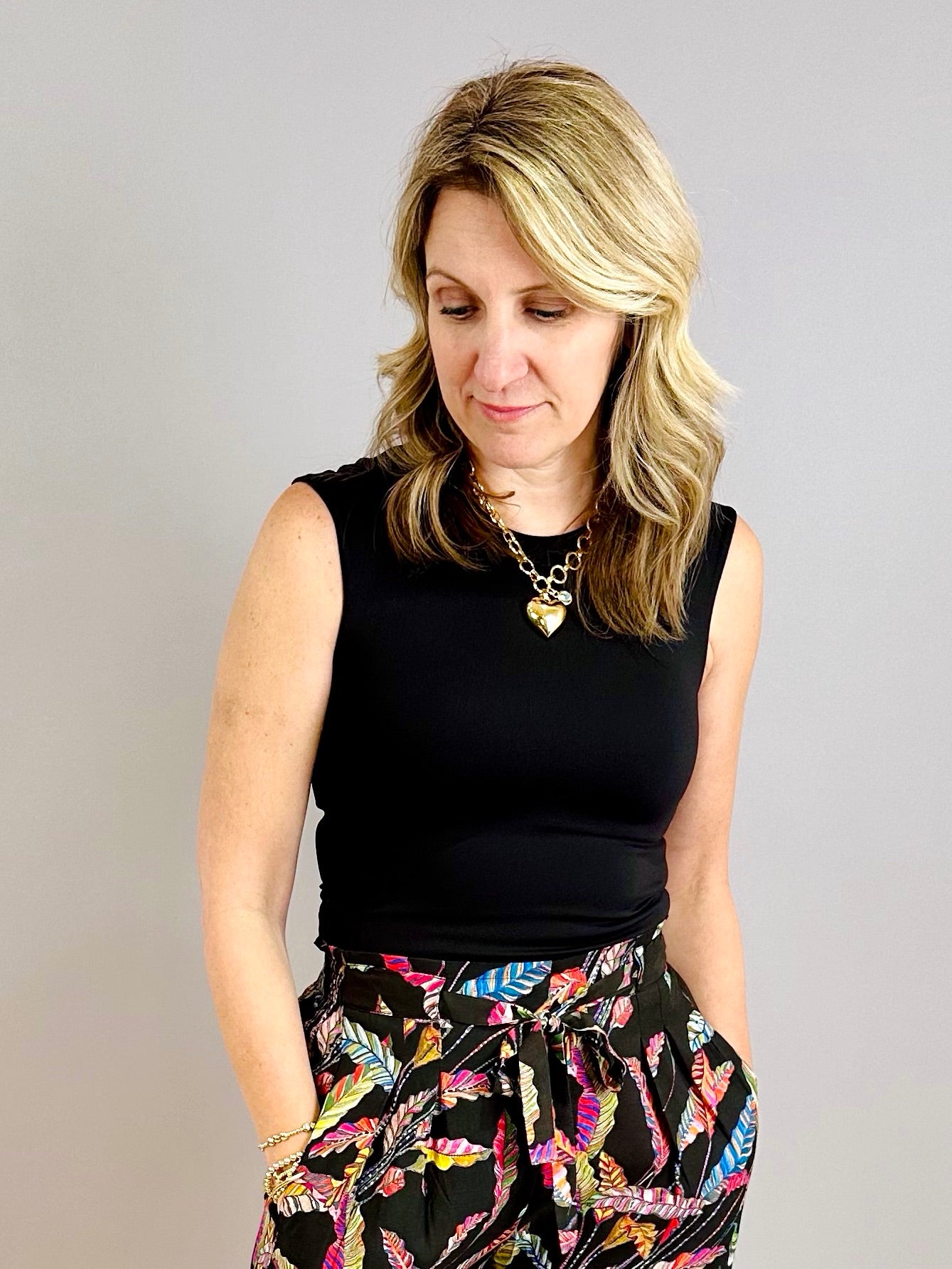 Spanx Cool Cotton Muscle Tank White/Black Stripe