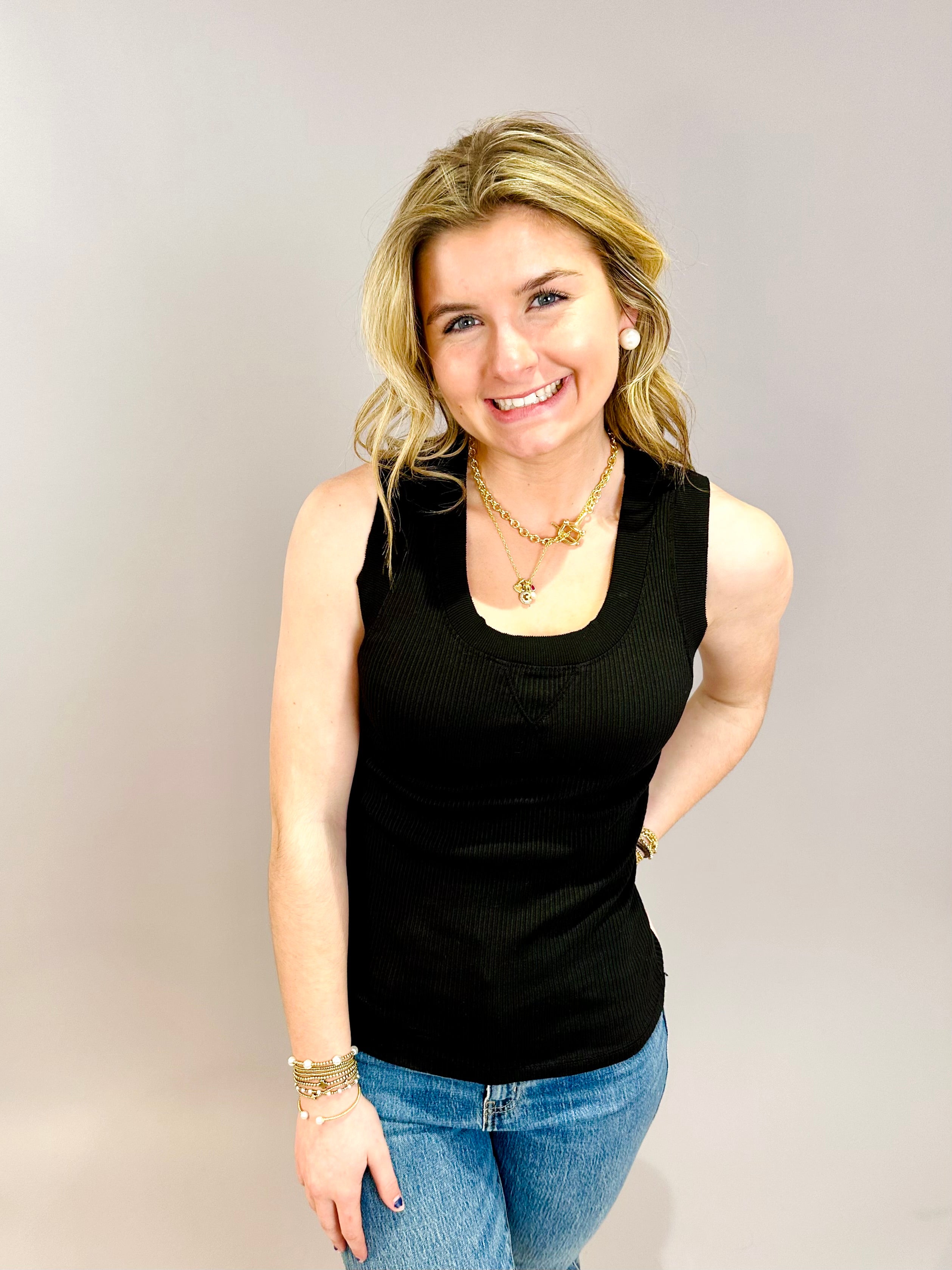 Maria V-Neck Tank Black