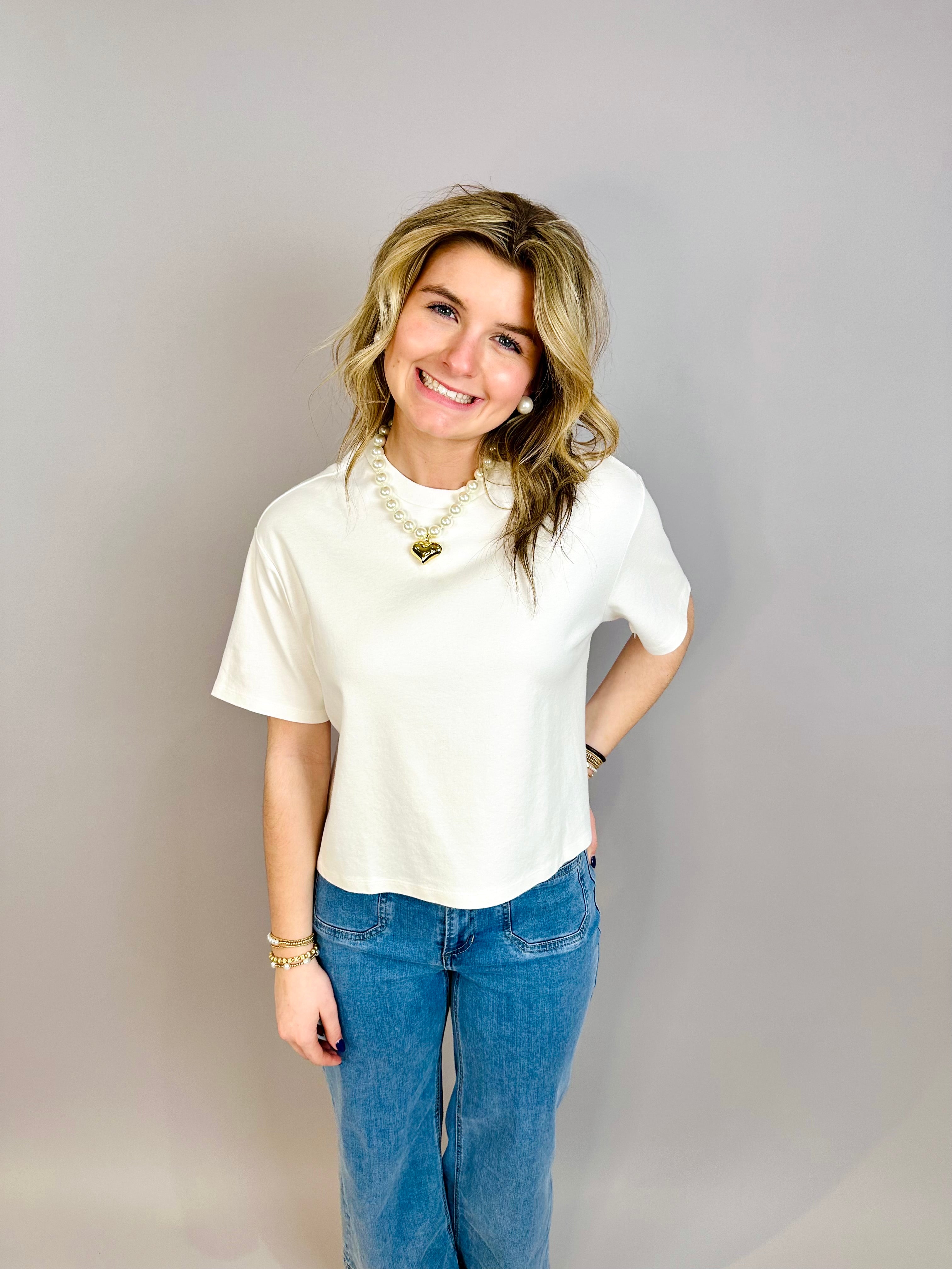 Maddox Boxy Crew Crop Tee White