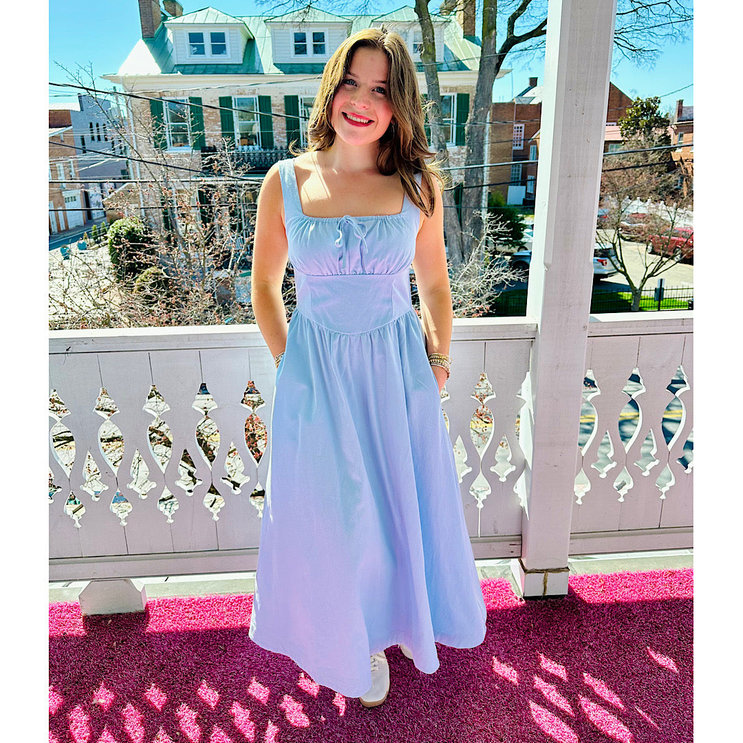 Twill Corset Midi Dress Blue