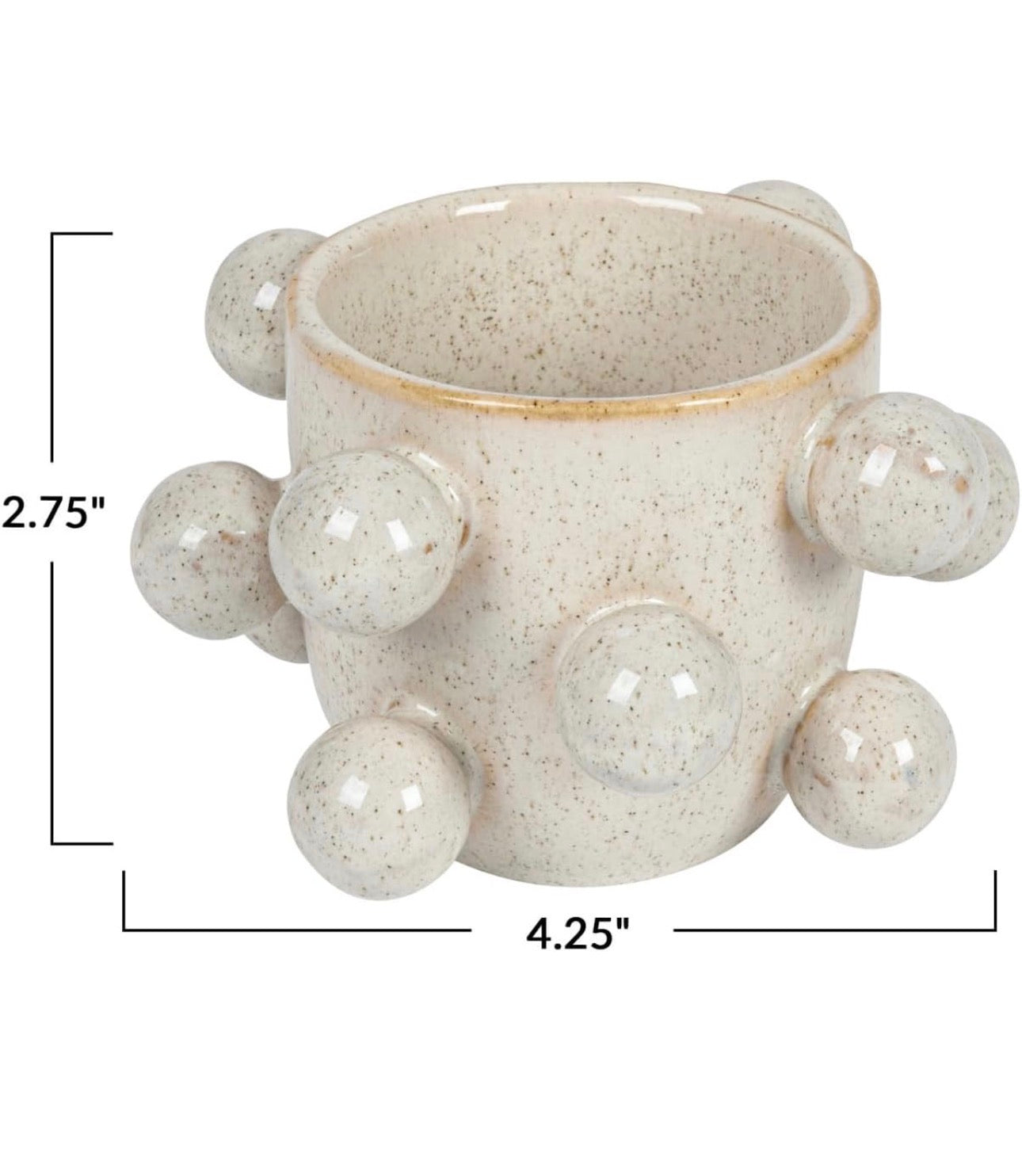 Stoneware Planter w/ Orbs, Reactive Glaze (Holds 3" Pot) (Each One Will Vary)