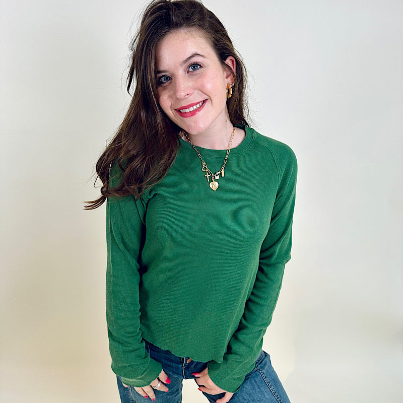 Curved Raglan Waffle Top Hunter Green