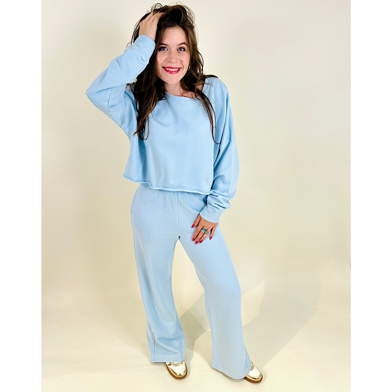 Cotton Terry Soft Sweatshirt/Pants Set Light Denim