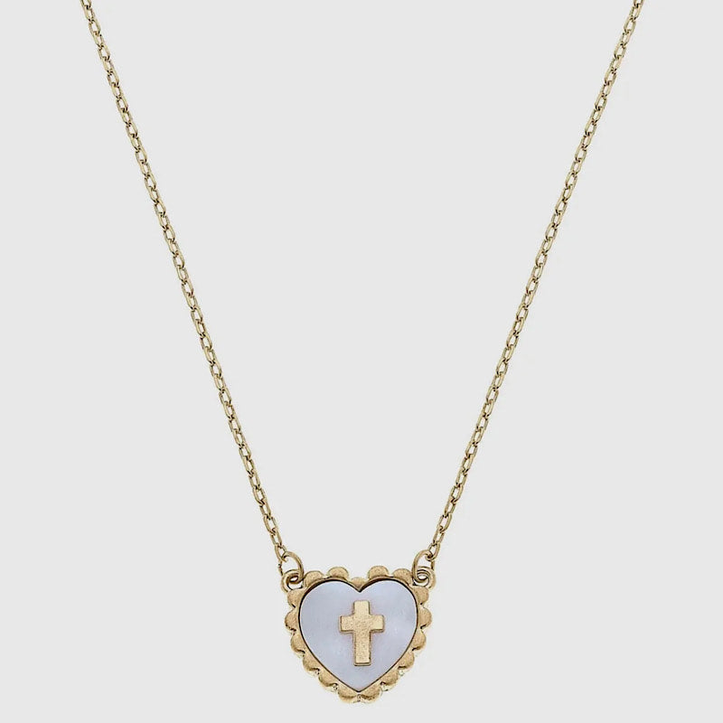 Canvas: Addi Heart Cross Necklace in Worn Gold