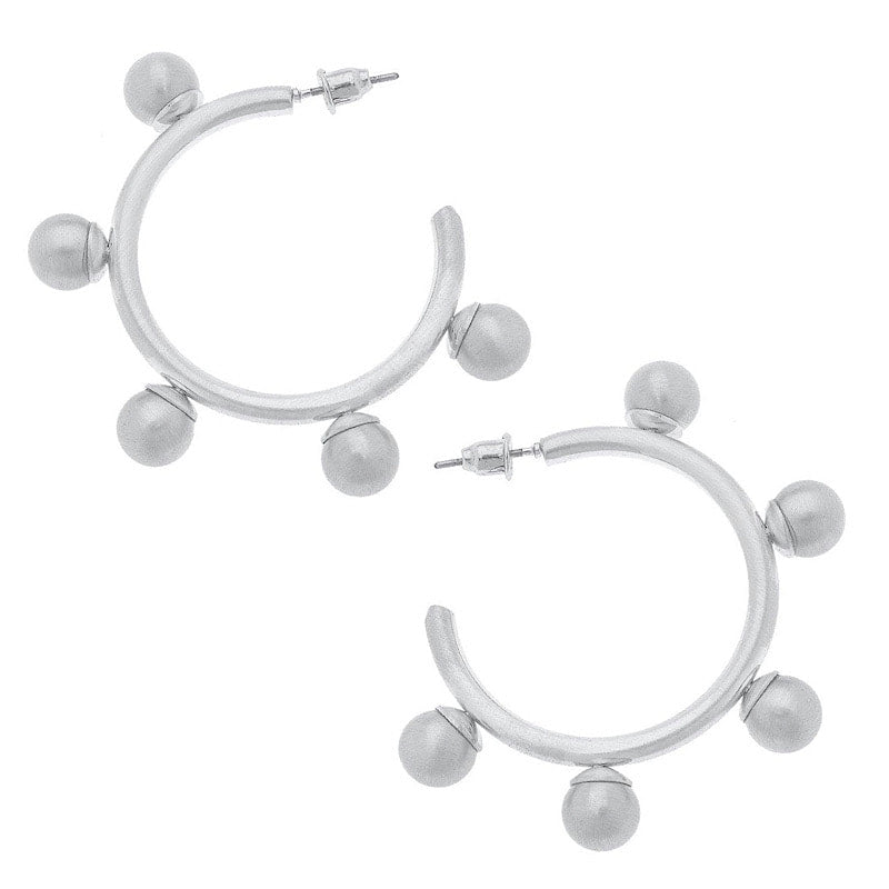 Canvas: Allison Ball Bead Hoop Earrings in Satin Silver