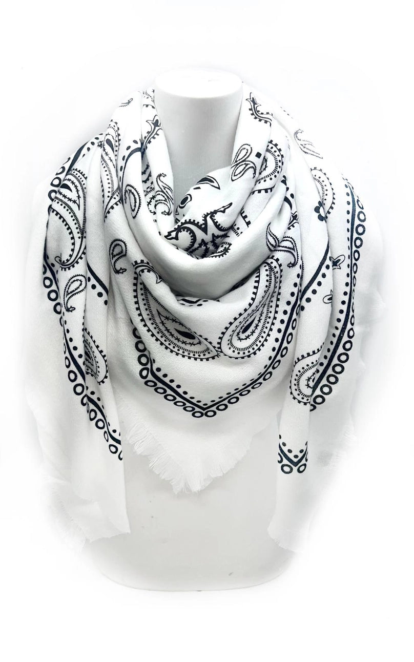 Large square bandana pattern scarves, super trendy! Soft material white/black K2