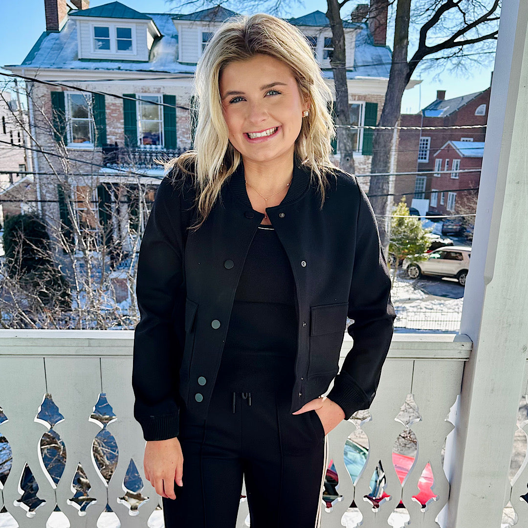 Black Knit Bomber Jacket