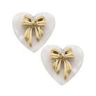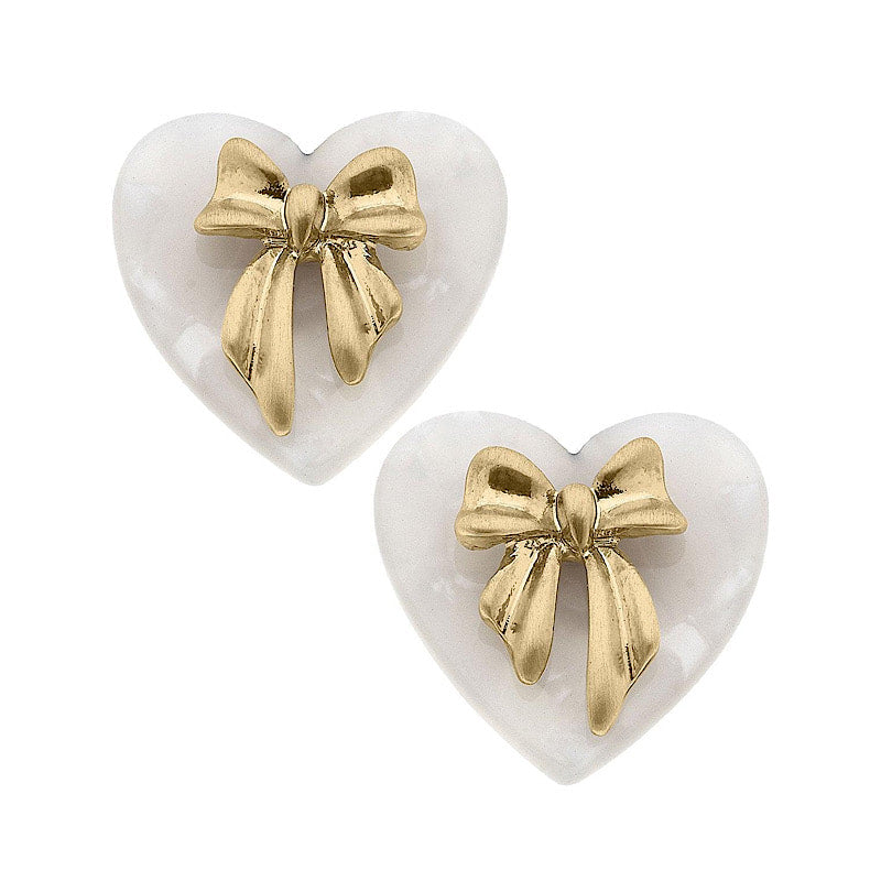 Canvas: Cecelia Bow Mother of Pearl Heart Stud Earrings in Worn Gold