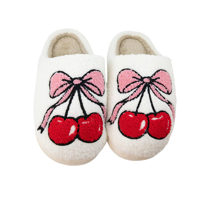 Aren't cherries just so cute? πππ With cherries trending and the coquette bows trend taking over the internet, we give you the Cherry Bow Slippers Shoes. You'll definitely be getting compliments on these, every day.
