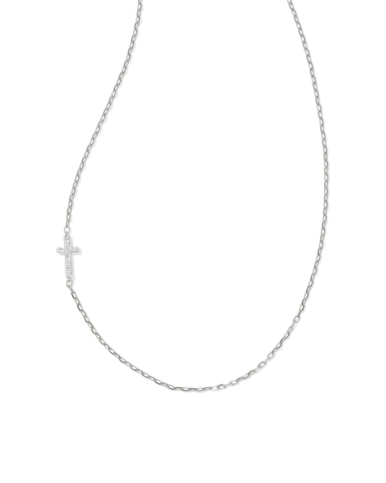Cross Inline Pave Necklace Sterling Silver White Topaz