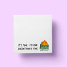 Sometimes all you can do is laugh through the chaos. Our Dumpster Fire Sticky Notes feature a cute-yet-accurate flaming trash bin and the phrase: “It’s fine. I’m fine. Everything’s fine.” Add some humor to your to-do lists, workplace rants, or existential reminders.