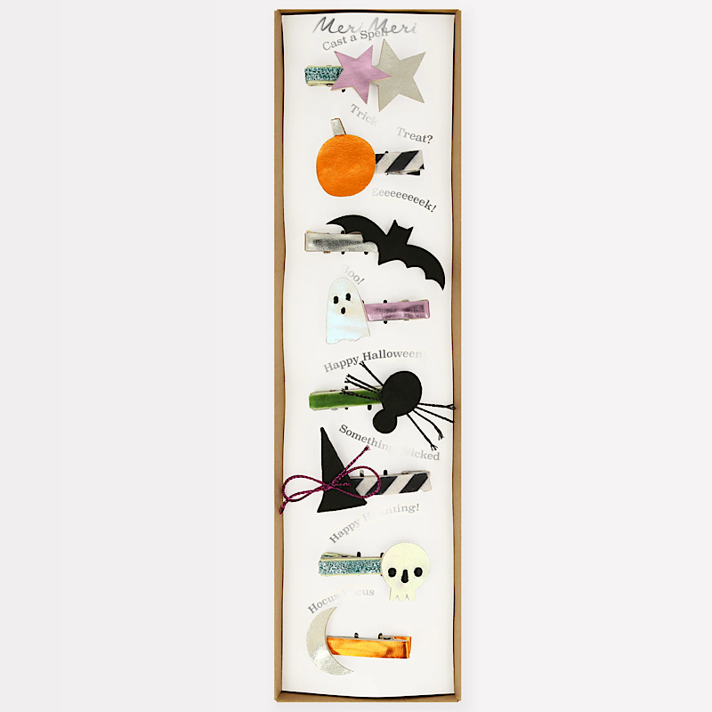Get hair-raising effects with our fabulous hair ciips, featuring all your favorite Halloween icons. Pop in just a few to complement your Halloween costume, or wear several for a really terrific look. They make great party bag gifts or party favors too.