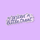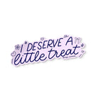 I deserve a little treat. Hand lettered and hand drawn 3 x 3 inch waterproof and weatherproof vinyl sticker.