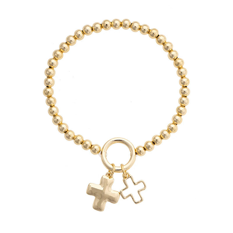 Loretta Cross Charm Ball Bead Bracelet Gold
