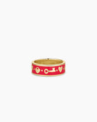 This colorful crimson enamel and gold plated ring symbolizes love and connection, and features a meaningful heart, padlock and key. Stack your ring or wear it solo. It's lightweight, eye-catching, and made for every outfit you own.