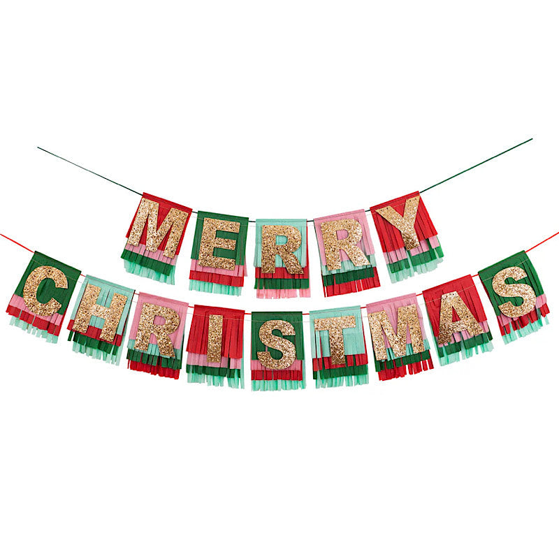 - Garland 2 is a text garland with 5 pennants that spell out 'Merry'