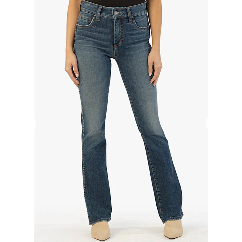 A simple bootcut silhouette never goes out of style. This pair is cut from our incredibly soft cotton denim in a medium base wash. This style is ultra figure flattering and can dress up any look.