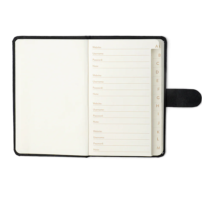 The Mini Password Journal - a stylish sanctuary for your digital secrets. This thoughtfully designed journal combines a sleek exterior with an intuitive interior layout, creating an organized haven for your confidential login details.