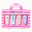For soft, hydrated hands anytime, anywhere. This four-piece moisturizing hand cream gift set features silky, quick-absorbing formulas in four soft, comforting scents: Blush Crush (rose), Vanilla Whirl (vanilla), Cherry Crush (cherry), and Berry Bliss (strawberry). Thoughtful and easy to give, it works seamlessly in holiday assortments, Christmas gifts, and stocking stuffer displays. Key Benefits Blush Crush: Rose extract + shea butter to soften and calm. Vanilla Whirl: Vanilla extract + shea butter for warm, comforting moisture. Cherry Crush: Cherry extract + shea butter to smooth and condition. Berry Bliss: Strawberry extract + shea butter